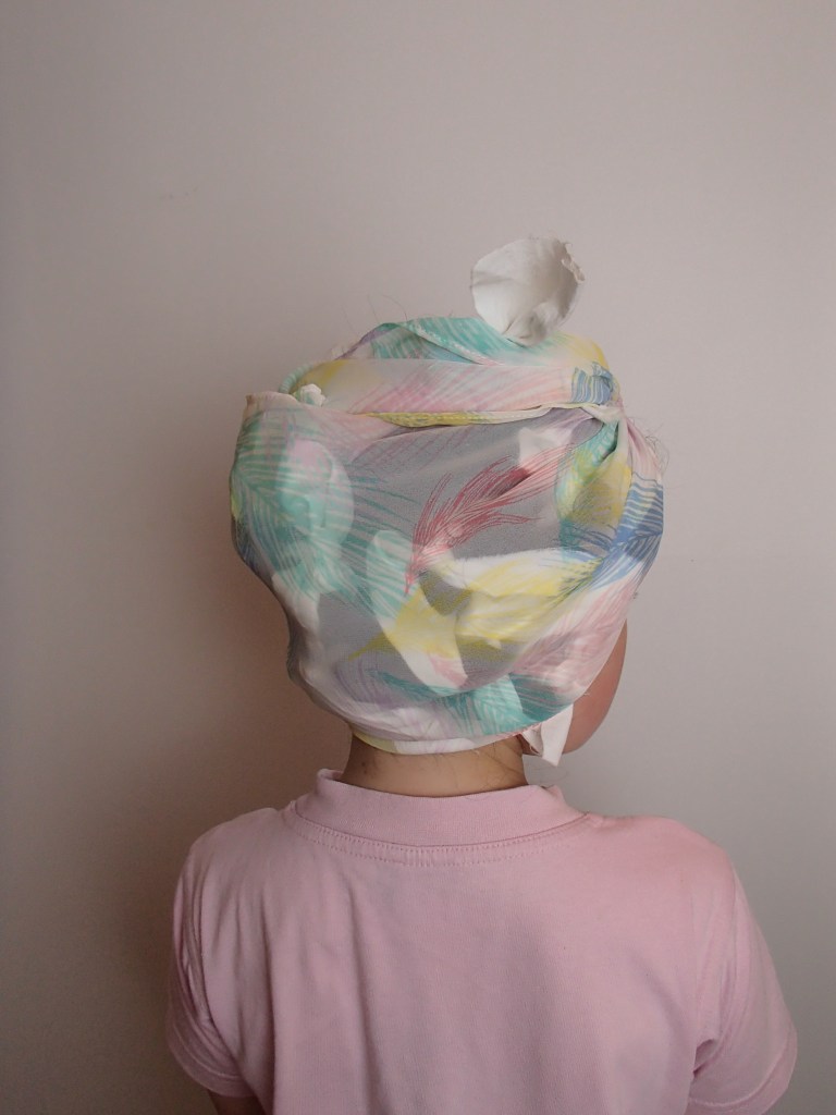 Once you have tied all your hair up in bundles, wrap a thin scarf around your head and tie it up for bed, I found this actually makes them more comfortable to sleep in and it helps the curls from being frizzy in the morning.
