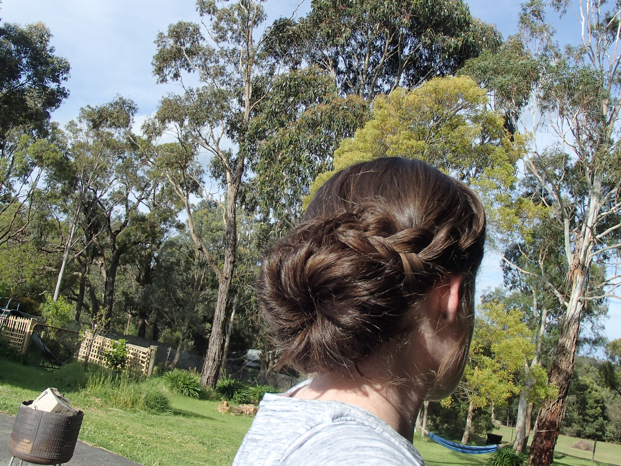- and the wrap the braid around the bun and secure into place with a few more bobby pins.