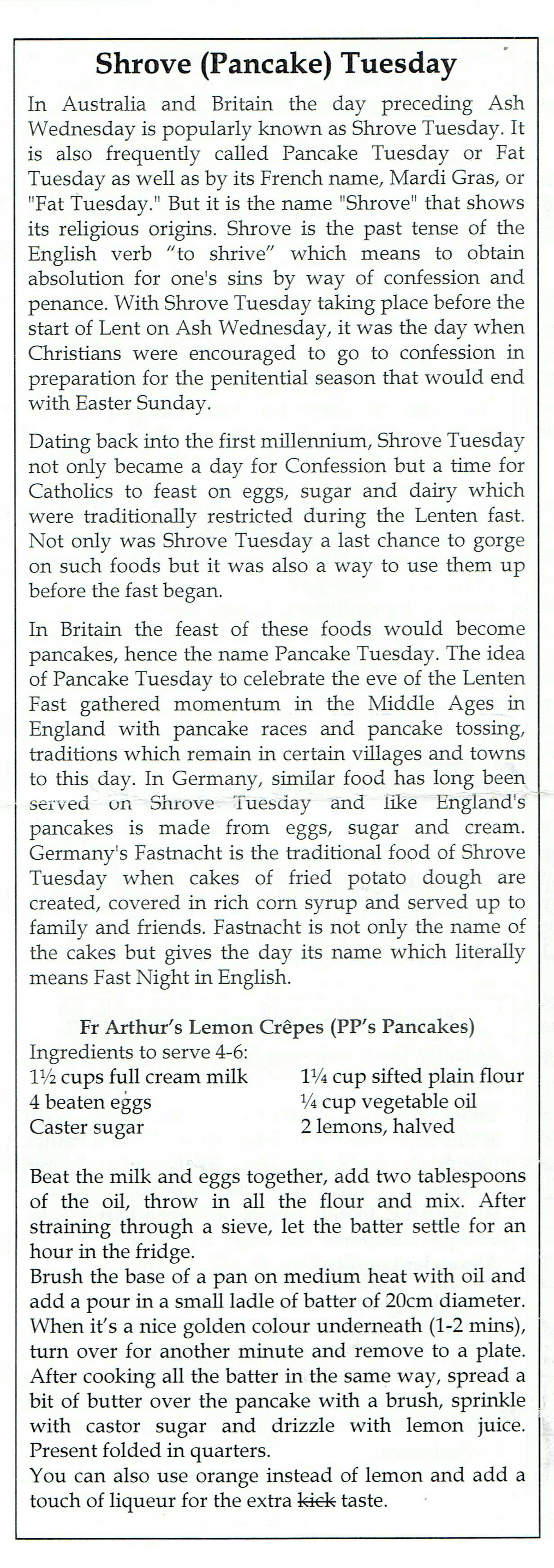 From the bulletin of St Gerard’s Catholic Church