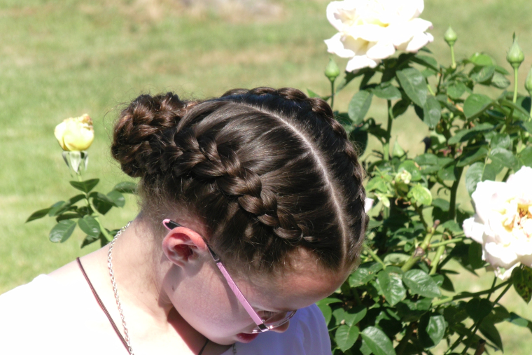 This is a really cute style that could be dressed up to be an almost formal hairstyle, or, I actually think if you had the bun secured with a hair tie and some extra bobby pins it could be a great sports hairstyle…